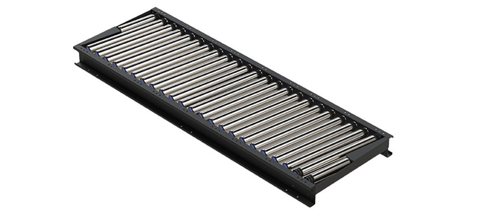 롤러가 사각도로 설치되어 있어 이송 중인 화물이 측면으로 유도되며 자연스럽게 정렬될 수 있습니다. 롤러 컨베이어는 파워롤러 이송 방식을 사용하여 센서만으로 제어가 되며 추가적인 제어 장치가 필요하지 않습니다. 바닥이 평평하고 형태가 규칙적인 다양한 재질의 박스, 상자, 소형 파레트 등을 이송할 수 있습니다.